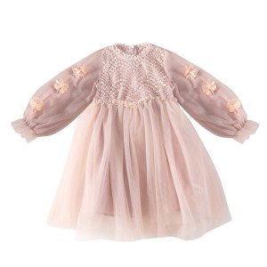 2-8Years High Quality Autumn winter Girl Dress 2022 New Lace Floral Draped Ruched Kid Children Clothing Girl Princess Dress