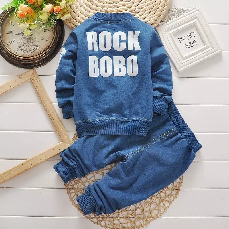 Hot selling 76 long sleeves jeans 2pcs private label boutique kid boy clothing sets