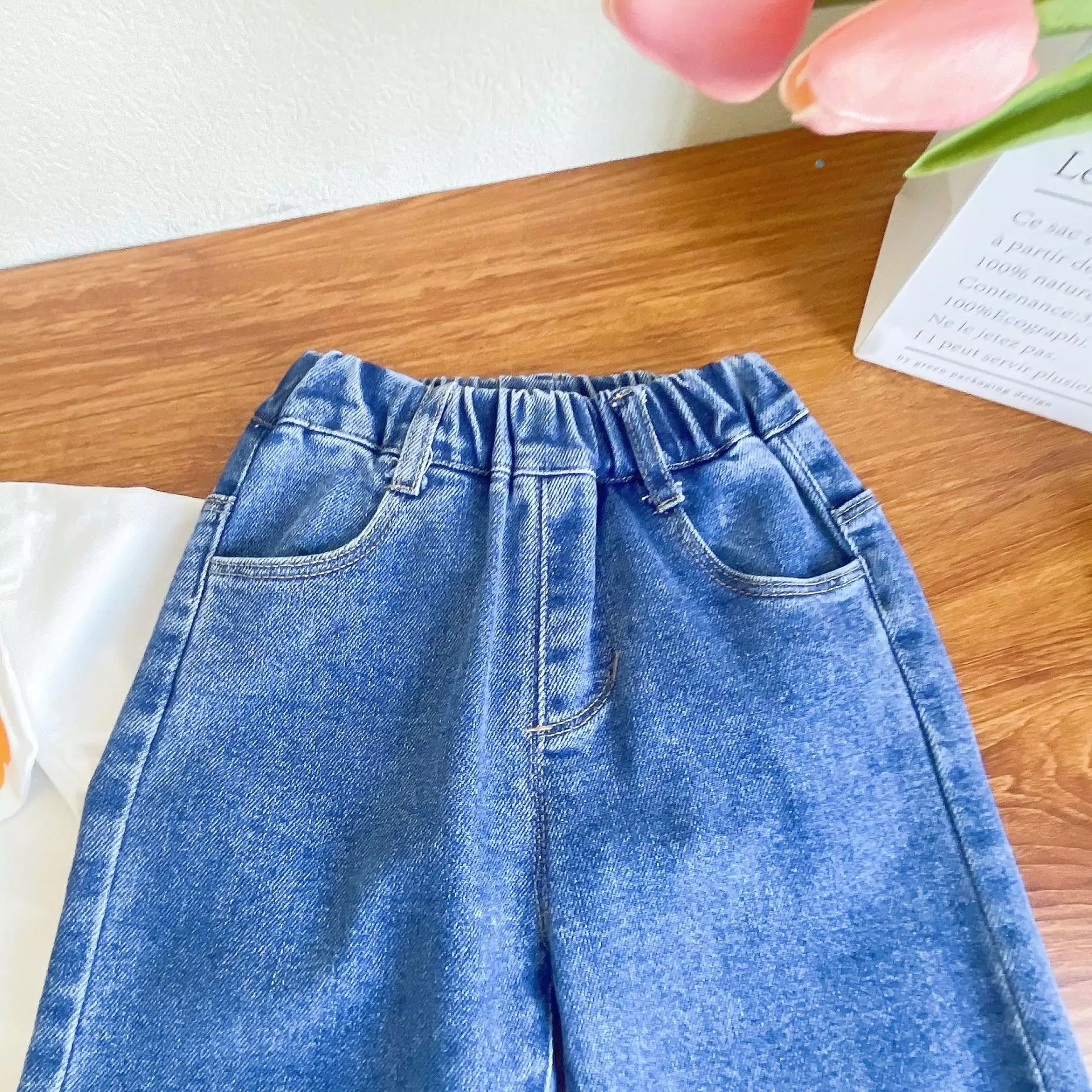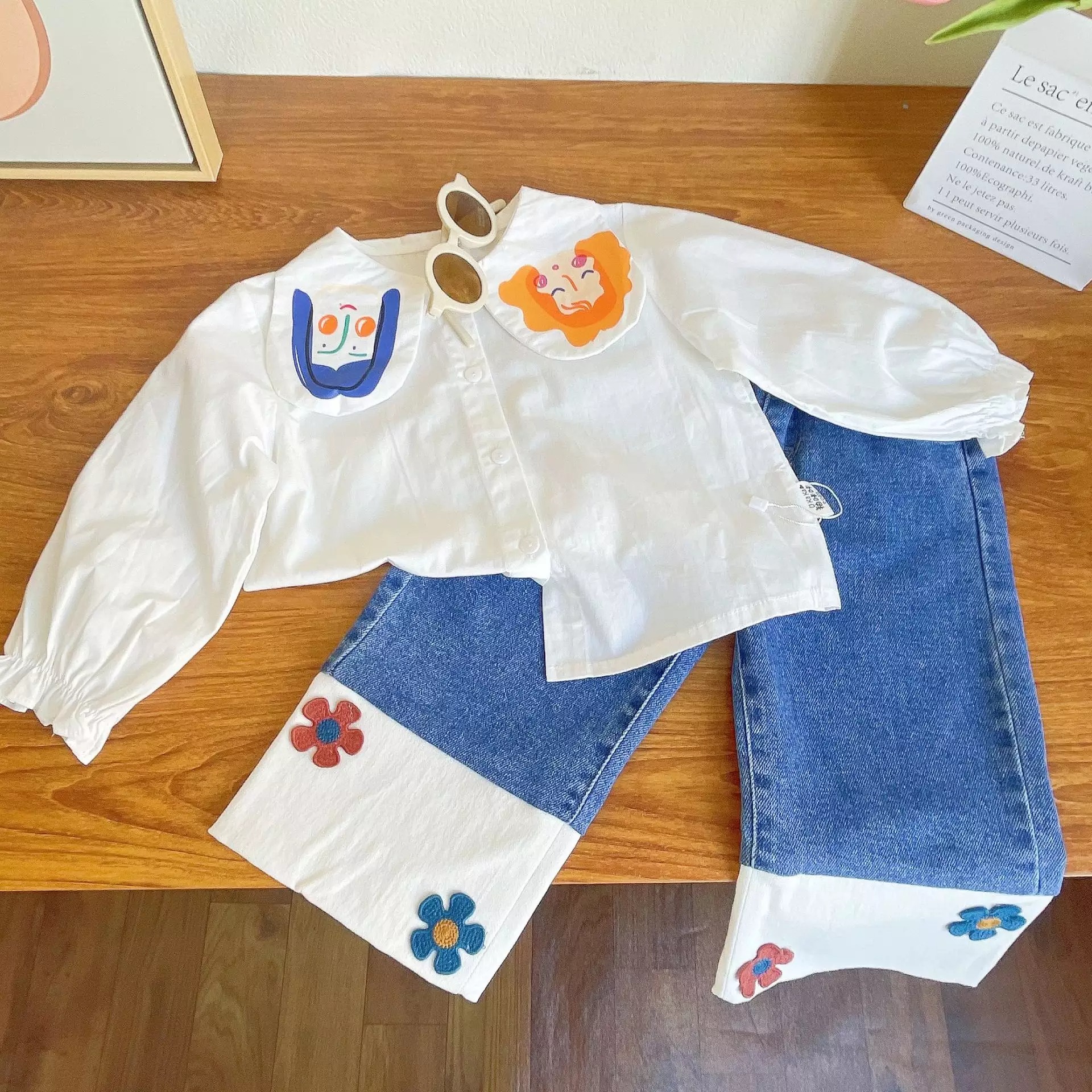 Girls' cartoon printed shirt and floral jeans suit for Spring and Autumn girls clothes set