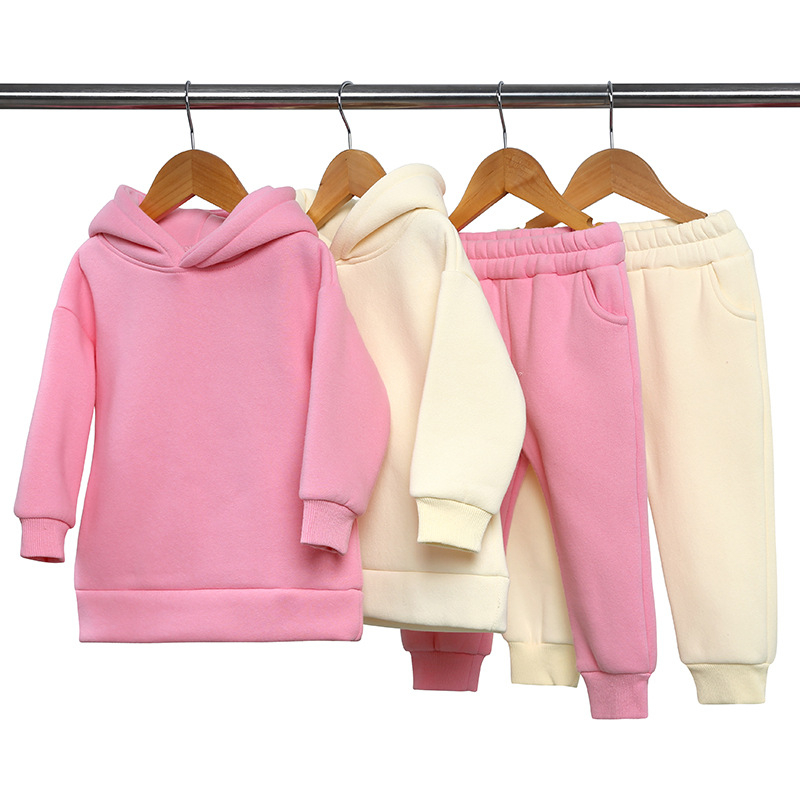2pcs Boys Girls Children Fleece Clothes Outwear Sets Autumn Winter Kids Hooded Sweatshirt Tracksuit sport wear Suit For 2-12Y