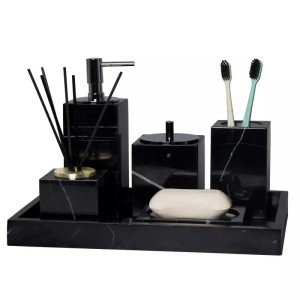 إكسسوارات الحمام فاخرة مجموعة أدوات صحية بيضاء حديثة، مجموعة حمام راتنج بوليريسين مع قاعدة ذهبية