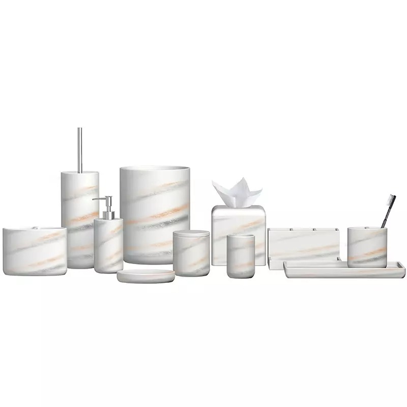 وصف مجموعة ملحقات الحمام الراتنج: |