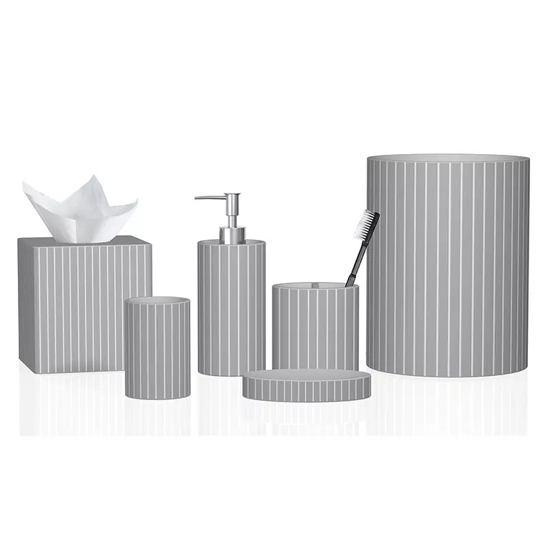 موزع غسول الراتنج: 2.99x2.99x4.33 " كوب من الراتينج: 3.07x3.07x4.13 بوصة حامل فرشاة الأسنان الراتنج : 4.13x2.36x4.33 " صحن صابون من الراتينج: 5.78x3.81x1.25 بوصة حامل فرشاة المرحاض الراتنج : 4.79x4.79x7.48 " علبة قطن من الراتينج |