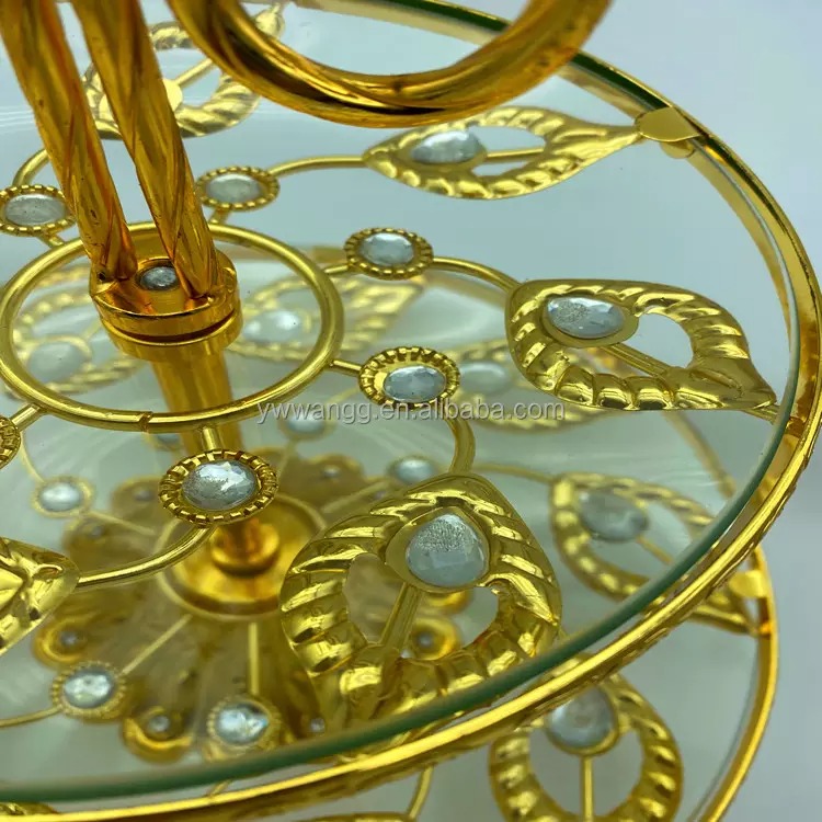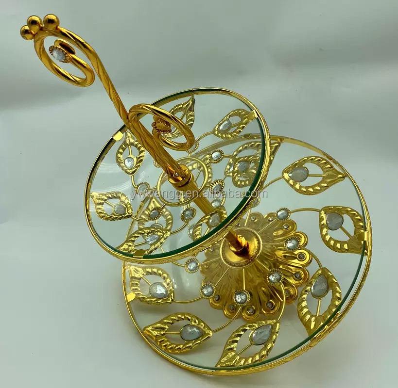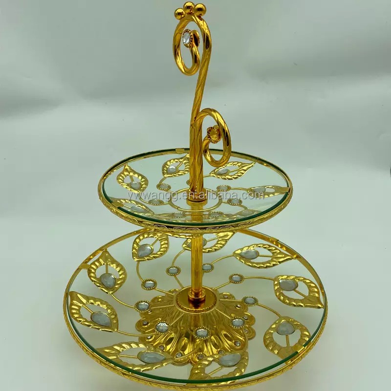 Beautiful 2-layer tempered glass metal glass fruit plate for home and restaurant